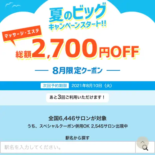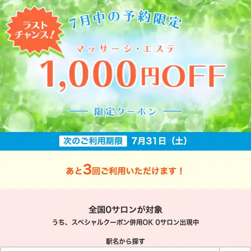 夏のマッサージ・エステ クーポン