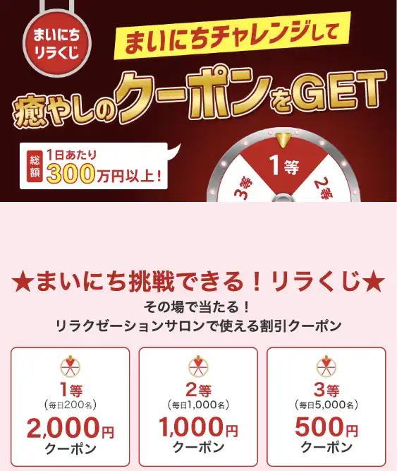 既存顧客向けサービス。毎日1回引けるルーレットくじクーポンで来店見込みの無いユーザーへ来店を促す。